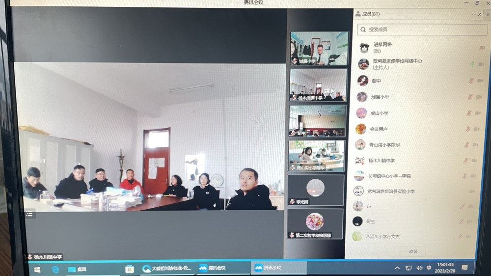 2月28日,2023年全县中小学教学工作会议在教师进修学校四楼视频会议室召开。会议全面学习贯彻党的二十大精神,回顾总结过去一年的教学工作,安排部署2023年新学年教学工作,动员全县中小学教师和教育工作者牢记使命、砥砺前行,推动宽甸教育高质量发展行稳致远。县教育局党组副书记隋金波,基础教育科科长夏青出席会议并讲话。教师进修学校领导班子成员、中小学教研员,全县中小学教学副校长在主会场参加了会议。全县中小学教导主任和教研组长在分会场(各学校视频会议室)参加了会议。会议由教师进修学校副校长高山主持。
