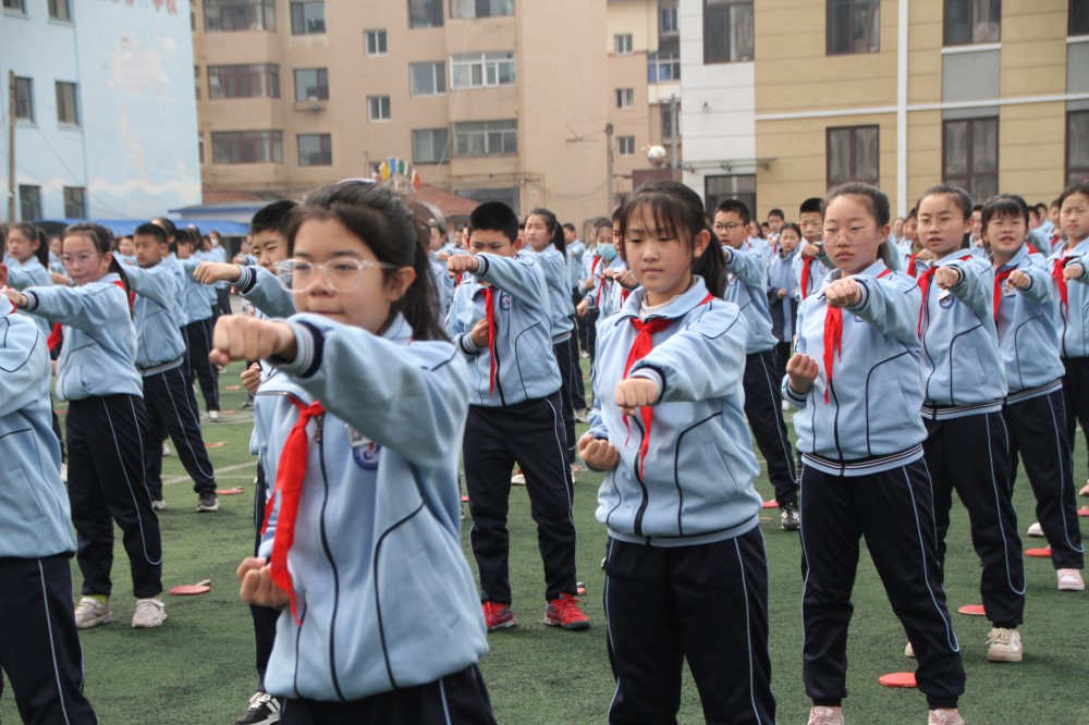 接着,调研人员来到操场,观摩了第二实验学校的大课间活动。
