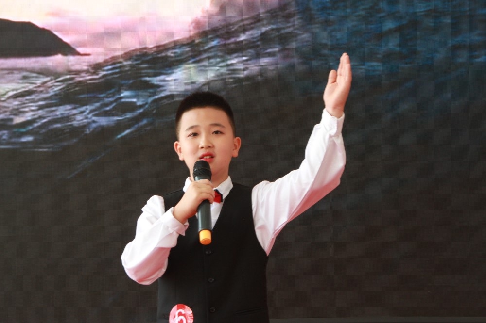 《长城》、《生命的姿势》、《我喜欢出发》、《军礼》、《海燕》...B组的小学高年级选手如初升的太阳,充满梦想和激情,他们在诵读中歌颂祖国,礼赞生命,令人心潮澎湃、热血沸腾。