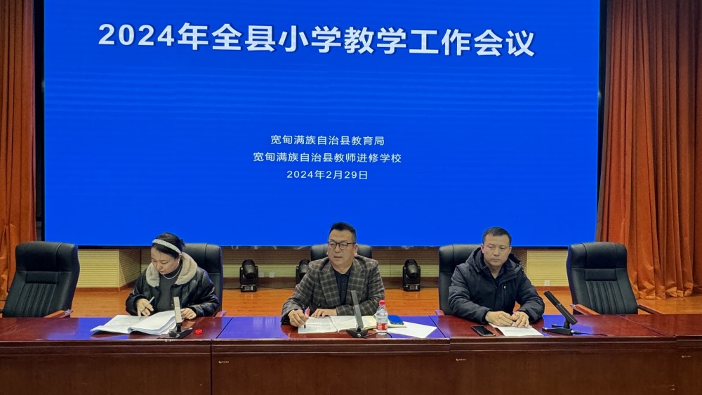 为更好地完成2024年教育教学任务,有效提高班主任工作水平和能力,规范教育教学工作管理,提高教育教学质量,2月29日,全县中小学班主任工作经验分享会议和教育教学工作会议在宽甸第一高中召开。会议采取现场会议和视频会议相结合的形式,主会场设在第一中学报告厅,分会场设在各学校视频会议室。