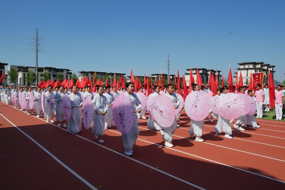 6月26日上午八点,伴随着激昂的乐曲声,阵容严整的大会前导队、英姿飒爽的裁判员方队、朝气蓬勃的运动员方队及流光溢彩的学校特色方队,身着整齐的服装,喊着嘹亮的口号,迈着矫健的步伐依次经过主席台接受检阅。鼓号声声,红旗猎猎,各支方队以昂扬向上、热情洋溢的姿态,充分展现了全县中小学生朝气蓬勃,积极向上的精神风貌。传承经典国粹,弘扬民族文化。检阅式上,由第二实验学校二年级和实验小学二年级学生及校舞蹈队分别进行了小学低年级社团活动亮点展示,他们演绎的汉唐文化片段、国粹风华及少儿民族舞蹈,带给我们一场“沉浸式”的传统文化体验。